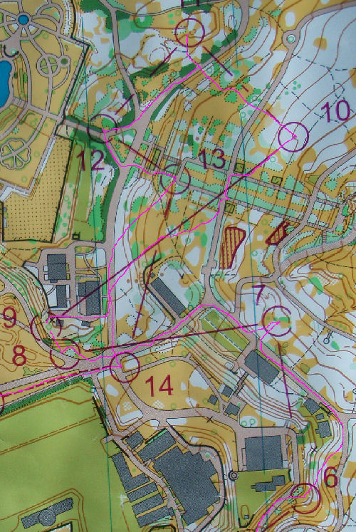 Le premier poste était dans un petit square entouré de haies infranchissables, j’arrive à bien anticiper le poste. Ce qui n’est pas le cas ensuite pour aller u poste 2, où je perds beaucoup de temps je pense : je fais l’angle des routes, et en plus je descend par les escaliers, très difficiles à courir et qui me font faire un détour… aïe aïe aïe, je sais où elles sont les 3 places juste devant à l’arrivée… C’était si facile de partir tout droit dans la forêt !