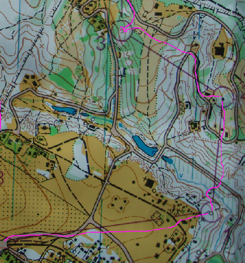 Je descends ensuite au fond de la petite vallée pour prendre le pont, et je remonte par l’avancée qui va me mener à la route puis au champ avant mon poste. Cela court bien. En sortant du poste, à l’arrivée sur la route, je vois l’estonienne qui arrive seulement et qui n’avait pas du tout fait le même choix… chouette, maintenant il faut continuer propre en orientation.