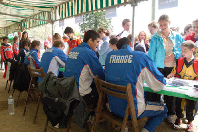Nous sommes arrivés à Bugeat en début d’après midi, il y avait déjà beaucoup de monde sur le lieu de course. Un petit coucou par ici, un bonjour par là, quel plaisir de revoir tout le petit monde de la CO, venant de tous horizons, et de pouvoir un peu discuter avec !!