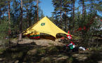 La matin, nous avons été mis en quarantaine dans une zone de l’autre côté de la route par rapport à la carte de course. C’était bien joli, avec de la végétation semi-ouverte, et les énormes tentes de l’organisation qui nous attendaient.