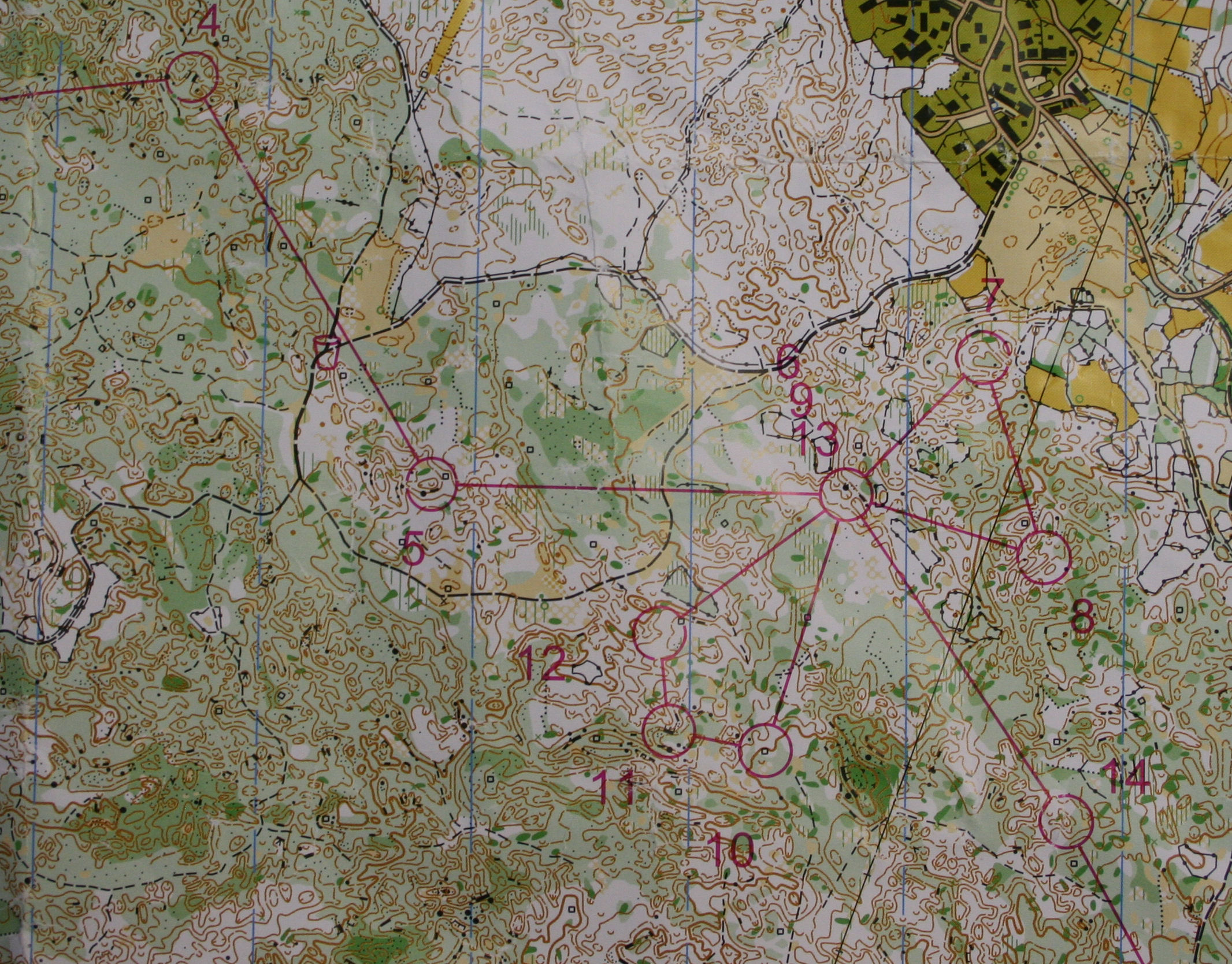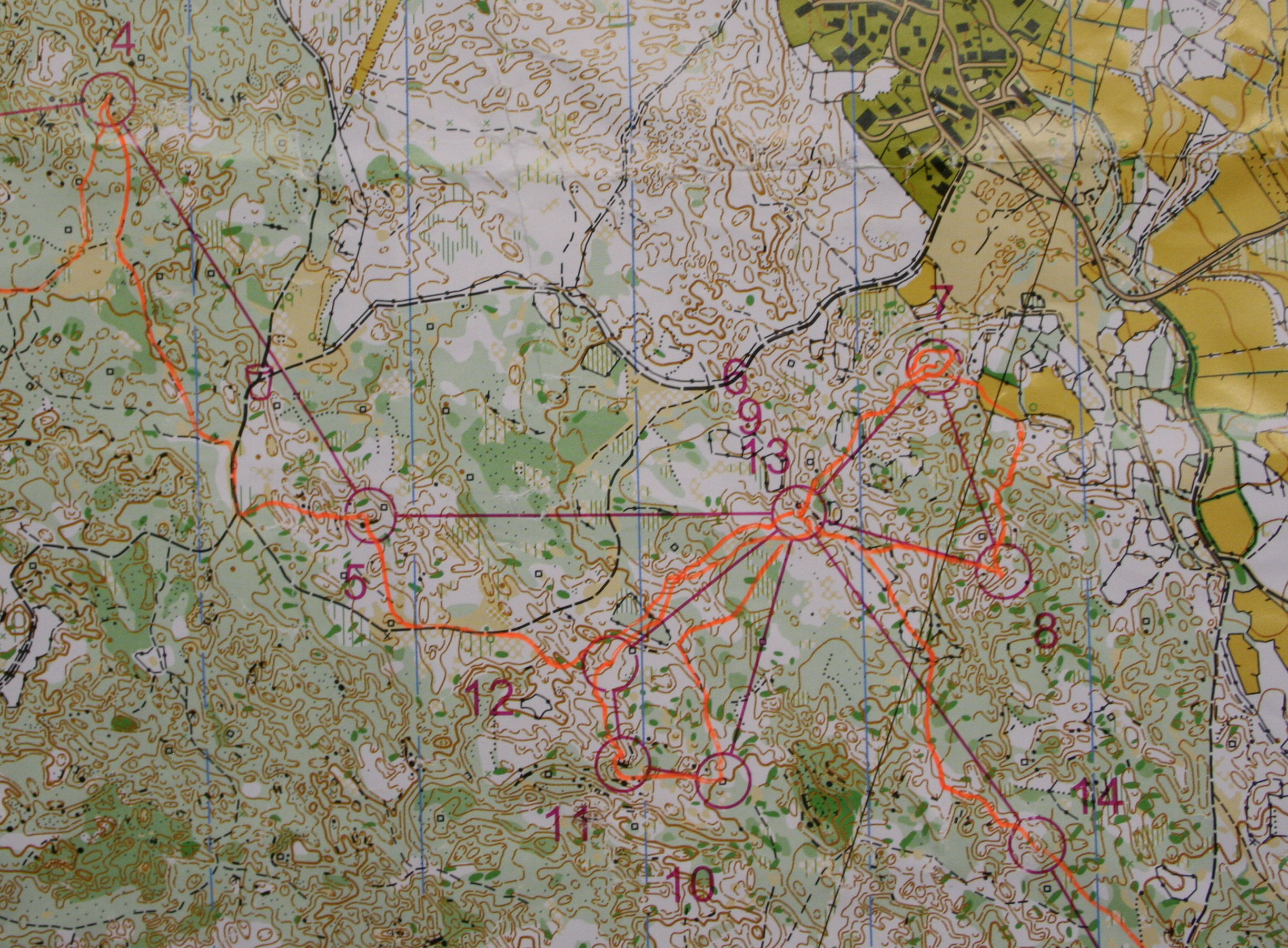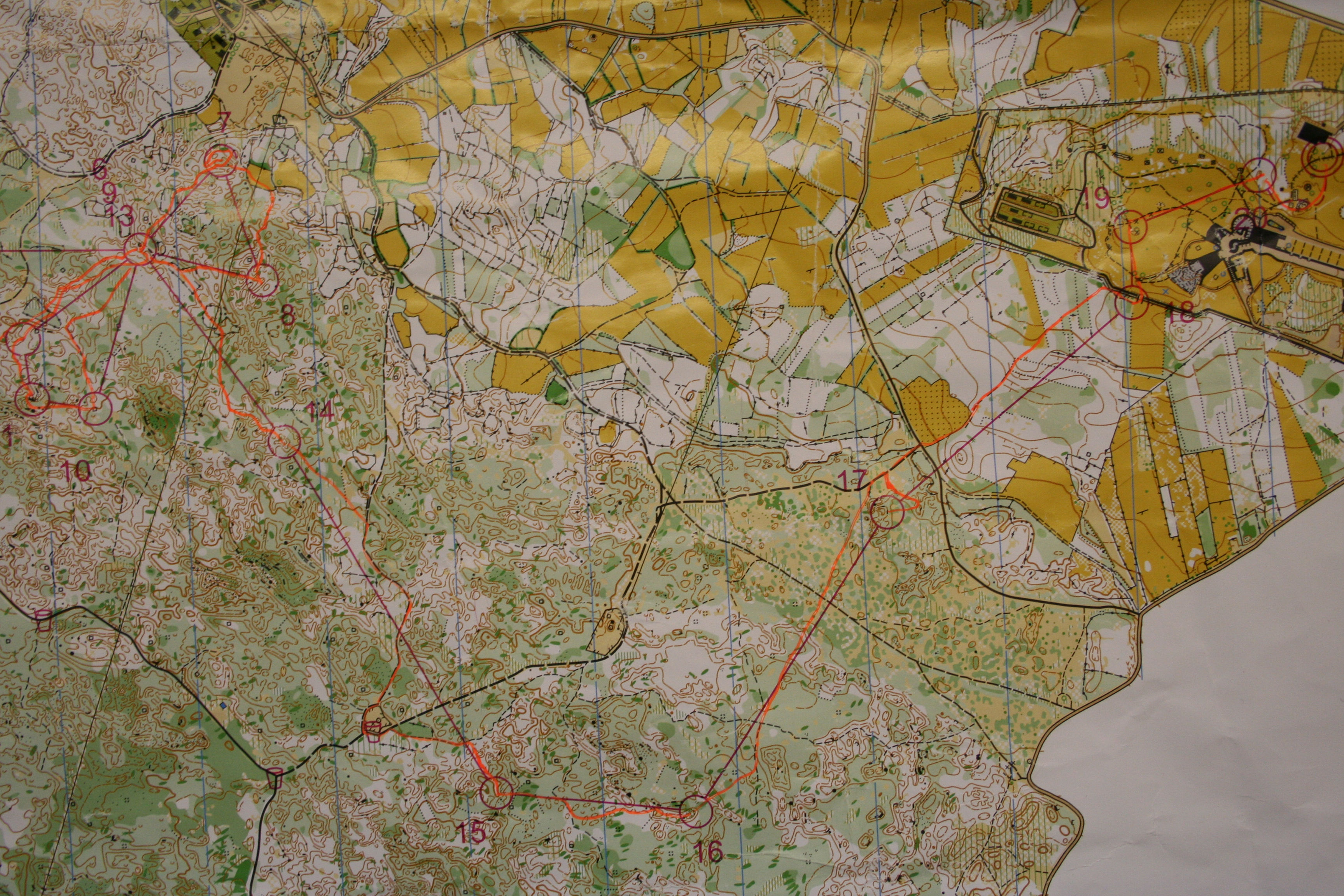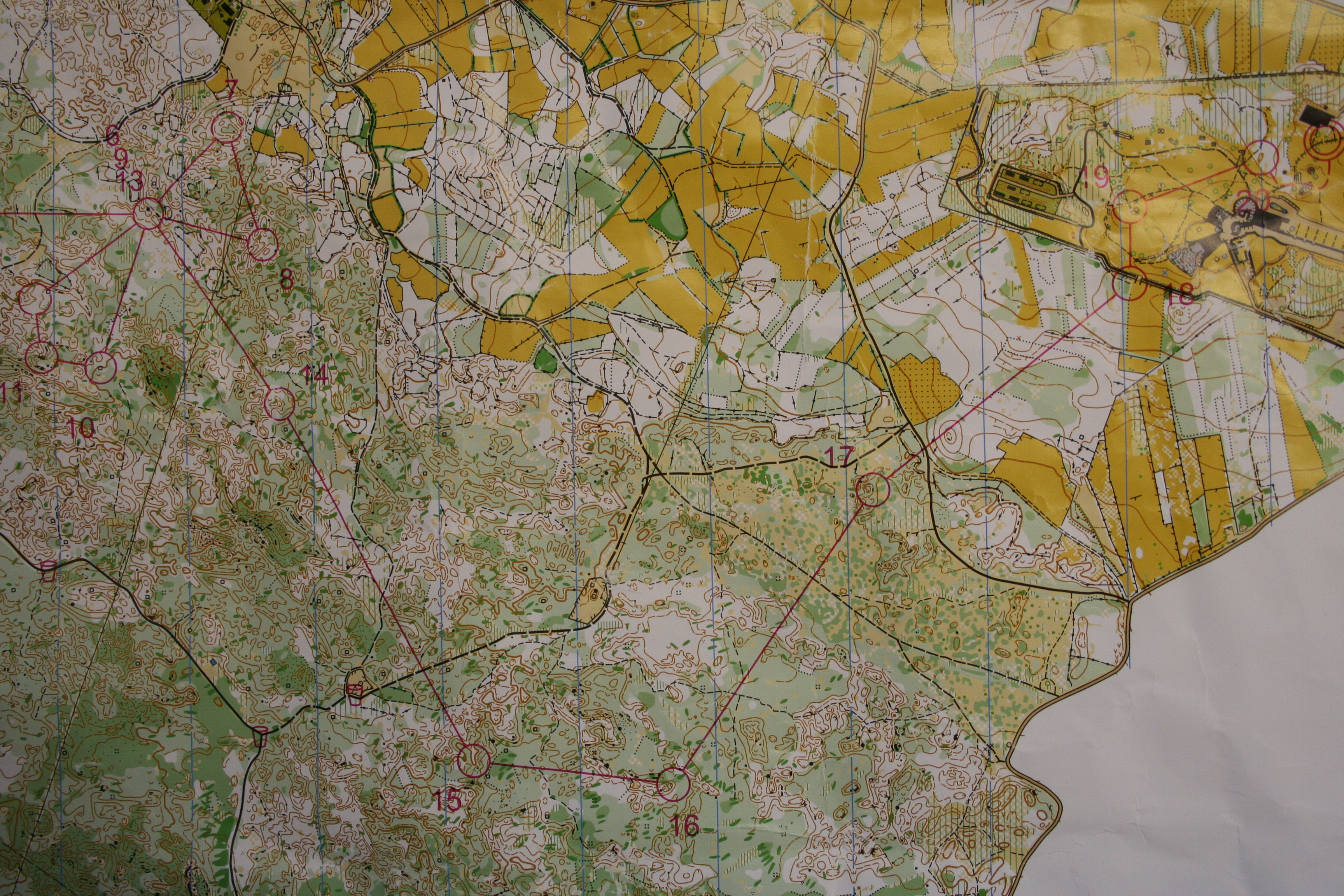 J’ai eu ensuite un petit moment de déconcentration, et je suis partie beaucoup trop tôt dans la forêt pour attaquer le poste 6 de bouclage du papillon. Je m’en suis rendue compte car je commençais à ne plus comprendre grand chose, mais j’ai perdu du temps. J’ai été très contente de retrouver un muret qui m’a permis de me relocaliser. J’ai également fait une faute sur le 1er poste du papillon (poste 7). Je suis passée à quelques mètres seulement du poste sans le voir et je suis partie me recaler. J’ai ensuite enchaîné sans trop de faute jusqu’au poste 17 : je passe une première fois à côté, et pars ensuite sur les dépressions à l’Est en revenant sur le poste !