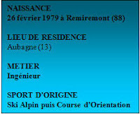"J’ai ensuite testé tous les sports qui s’offraient à moi : le golf, la voile, le basket, le hand, l’escalade, le volley, le ski de fond, l’athlétisme… ce qui m’a permis de découvrir que j’avais des qualités pour les sports d’endurance. La révélation, ça a été la course d’orientation : ma troisième course de ma vie était une « nationale », avec toutes les meilleures françaises… j’ai terminé 2ème… c’était le sport que je cherchais, courir avec des objectifs, des choix à faire, hors des sentiers battus, au milieu de la nature… un défi, un plaisir de tous les instants à se battre avec soi-même, le bonheur !!"