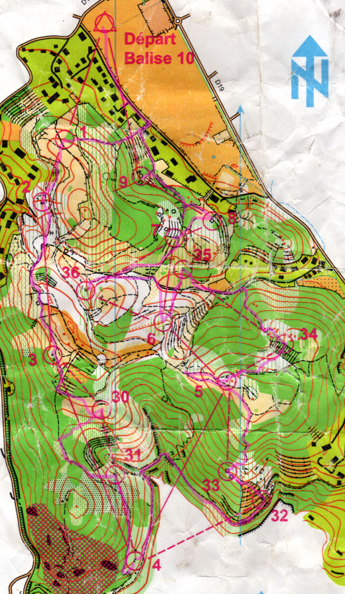 La fatigue a pas mal joué… les erreurs aussi… avec un choix pas terrible 30-31, pour éviter ce vert si piquant… et finalement c’était encore pire… une option 34 et 35 pas payante… et des éléments manquant de temps en temps sur la carte… je suis assez déçue de ma course.