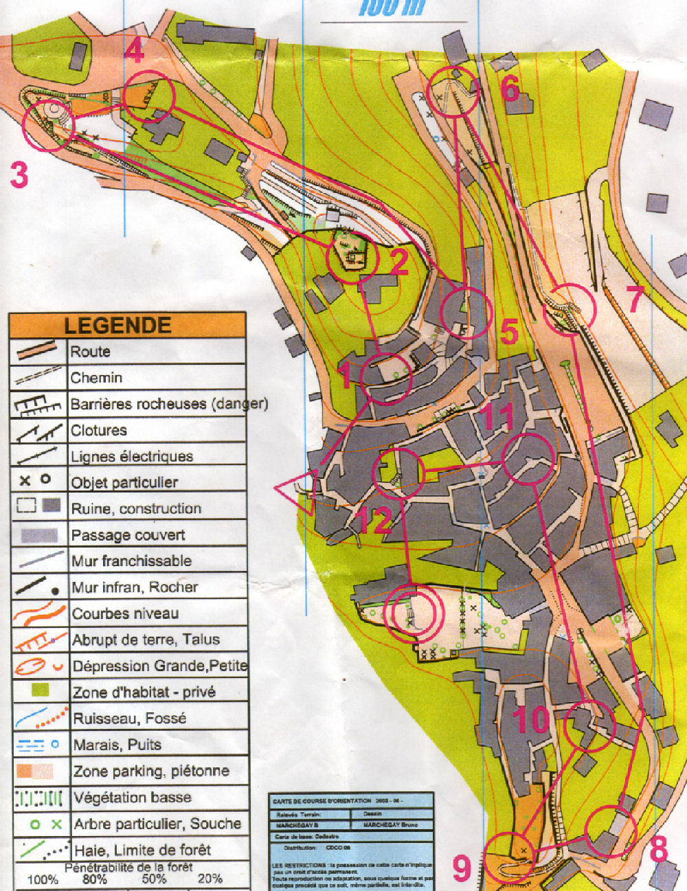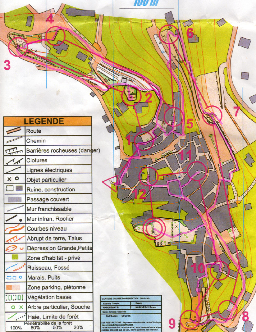 Il y avait là aussi des options qui faisaient gagner du temps : 5’ par balise option, celles reliées par des traits discontinus. Le but était de tout prendre… La fatigue commençait à bien se faire sentir, et il est arrivé plusieurs fois que je ne fasse pas attention au deuxième trait qui partait du poste et que je parte directement sur le poste obligatoire suivant… en mettant le clignotant rapidement, en voyant Benoît, qui nous avait rattrapé en début de CO, partir dans une autre direction que la mienne, comme par exemple sur les postes 34 35 36. Merci Benoît…