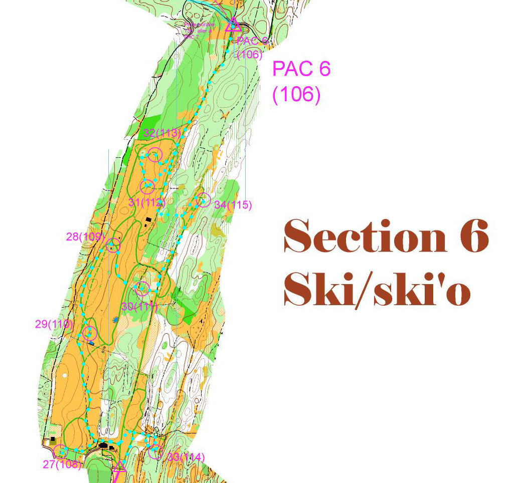 Toute la première partie était en poussée… mes petits bras de grenouille ont bien souffert… et puis c’était parti pour une portion de skate en suivi d’itinéraire, où on voit Mathieu et Alex qui nous rattrapent. Cela nous emmenait à une petite CO score bien sympa.