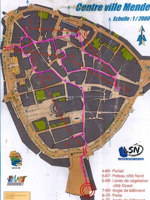 Thomas et Seb m'attendaient... et nous avons pris la carte de CO urbaine qui allait nous mener sur la grande place de Mende.