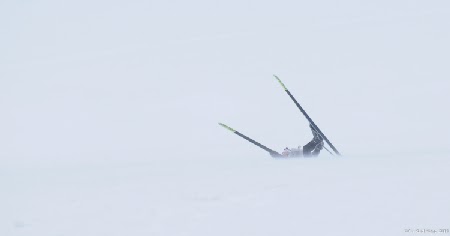 On termine la section pas trop mal, avec une descente de la mort en ski de fond sur une ancienne piste de ski alpin toute soufflée et verglacée… j’en arrive même à déchausser les skis, et surtout tout le monde tombe dans tous les sens et ça fait plein de bonhommes de neige partout !! Quel style sur les photos… les bras en avant, les fesses en arrière, on sent la maîtrise ! Y’en a qui ont dû bien se marrer derrière leurs objectifs !!