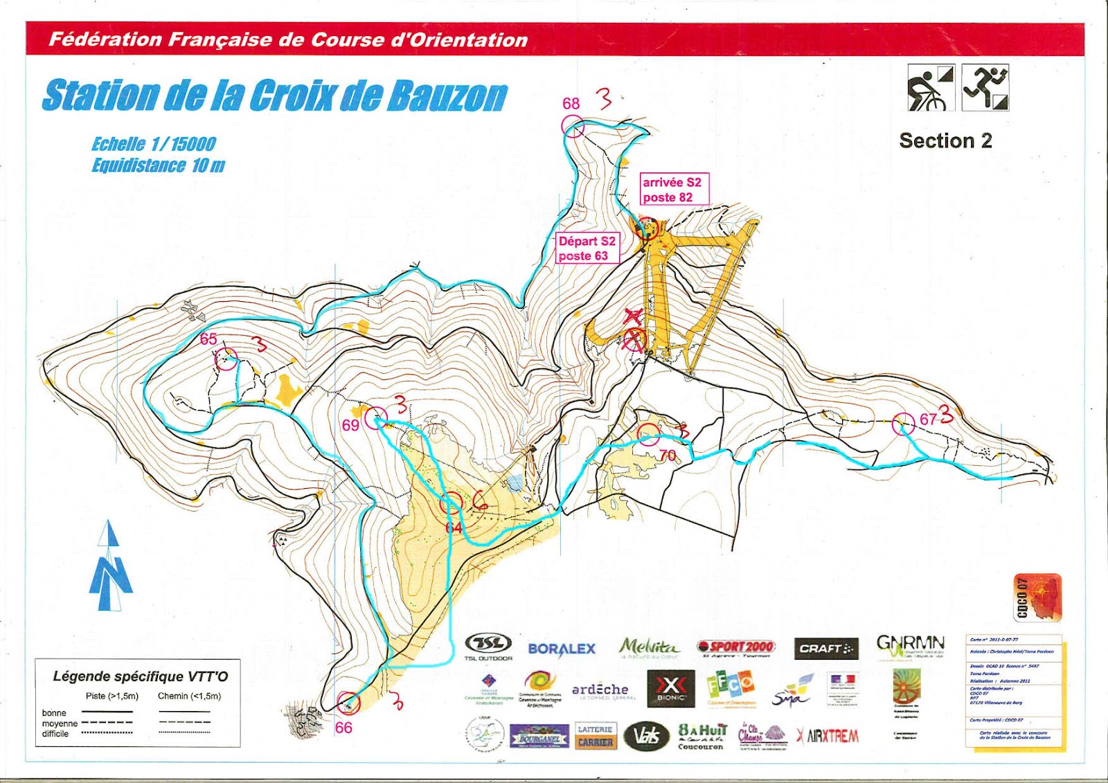 En haut de la montée, soulagement… cela correspond, mais c’est sans compter sur les indications de piste en plus que nous avions eu par les organisateurs au début de la section… que j’avais déjà oubliées… et je ne comprends plus rien. On est alors avec Mathieu et Alex, qui ne comprennent rien non plus… je suis déconfite, Alex est quand même champion de France de ski’O, alors si lui ne comprend rien, on n’est pas rendus… Il nous faut du temps… plein d’équipes passent… et nous revenons enfin dans le droit chemin, mais une bonne dizaine de minutes de perdues de pense, et une grosse déception d’avoir fait une si grosse boulette…