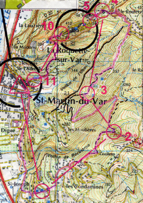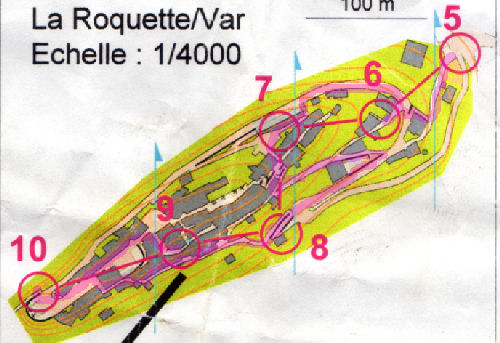 A partir du poste 5, une loupe bien sympathique nous faisait découvrir La Roquette sur Var, sur carte IOF de sprint.