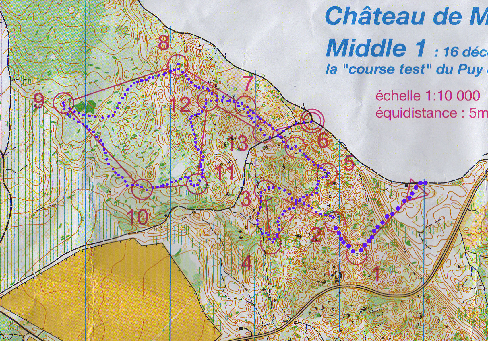 Je fais vraiment une super course... en 30'50, pour 3 km et 13 postes, avec une arrivée dantesque au milieu d'un terrain découvert magnifique au pied des Puys de la Vache et de Lassolas, recouvert d'herbe jaunâtre qui n'est pas sans rappeler nos belles forêts d'altitude vosgiennes parsemées de clairières... Si j'avais fait une une aussi belle course à la middle de la finale de la world cup, ça aurait pu donner quelquechose de très beau, mais j'ai fait des super courses à côté, avec le sprint et la longue, alors on ne va pas trop en demander !!