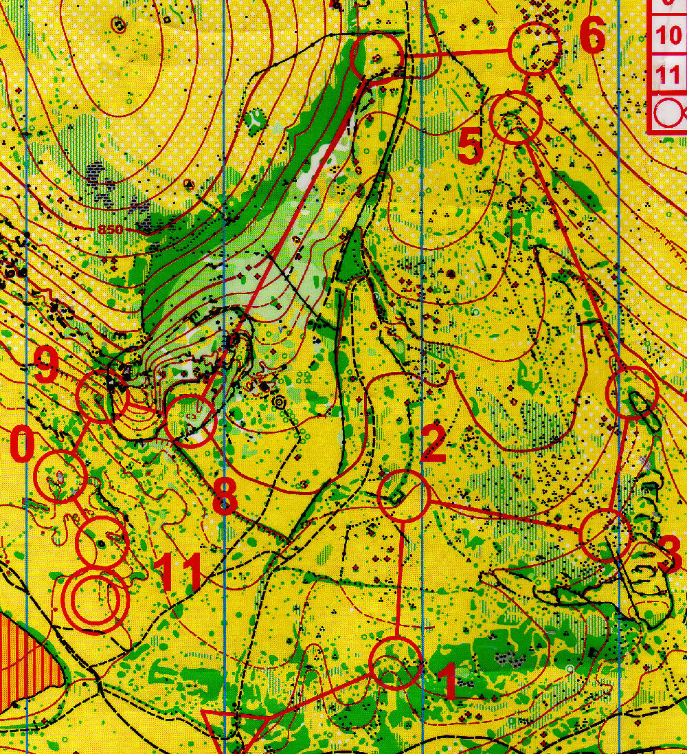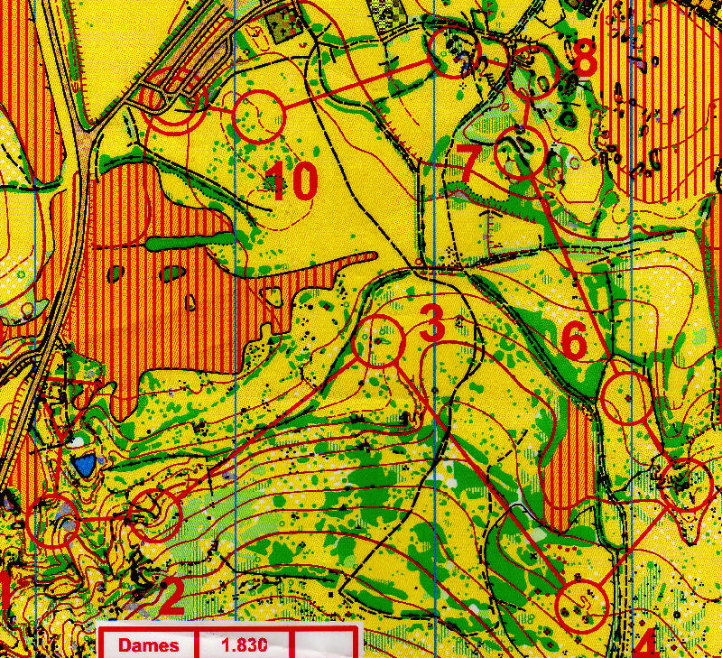 La fin se faisait sur le même type d'orientation, avec des passages clefs à ne pas manquer, notamment lors du slalom dans les limites de végétation à la 2 et la 3 (la 3 que je rate joliment... et je suis obligée d'aller me recaler vers le chemin.... et pourtant c'est un vallon !!). Je boucle l'entraînement en 1h25'11''.