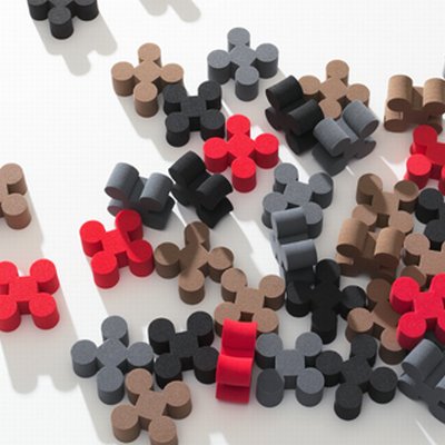12 petites pièces de mousse qui permettent de réaliser une étagère à CD avec les CD eux-même.