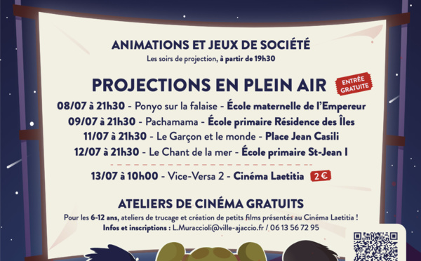 A Cità d'Aiacciu prisenta Luciula, u festivali di cinema à l'infora pà i zitelli ! La Ville d'Ajaccio présente Luciula, le festival de cinéma en plein air pour enfant ! Du 8 au 13 juillet 2024