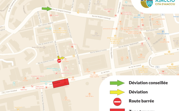 Par via di i travagli di a piazza di u Diamanti : a rigulamintazioni di a circulazioni cambia À l'occasion de la requalification de la place du Diamant et de son parking, la circulation et le stationnement seront règlementés, rue maréchal Ornano, portion...