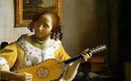 Son beau visage ovale est tourné vers son maître de musique (que l’on imagine car il n’est pas représenté dans le tableau), son front, sa chevelure, sa joue gauche et son décolleté reçoivent la lumière. Ses mèches bouclées touchent ses épaule. Elle est très attentive.