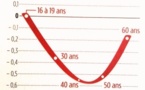 En effet, le bien être en Occident suivrait une courbe en U, dénommée la courbe du "sourire" : en hausse à l'adolescence, elle chuterait progressivement à son plus bas à 50 ans, pour mieux renaître et atteindre l'extase vers 60 ans. La tranche d'âge des 40 -50 ans serait la période la plus difficile à vivre, un cap à franchir. Pourquoi cette période charnière des 40 ans ? Peut-être un effet "génération sandwich". En Afrique, la courbe serait plate et au Moyen Orient, déclinante. Ce n'est malheureusement pas non plus une courbe universelle !