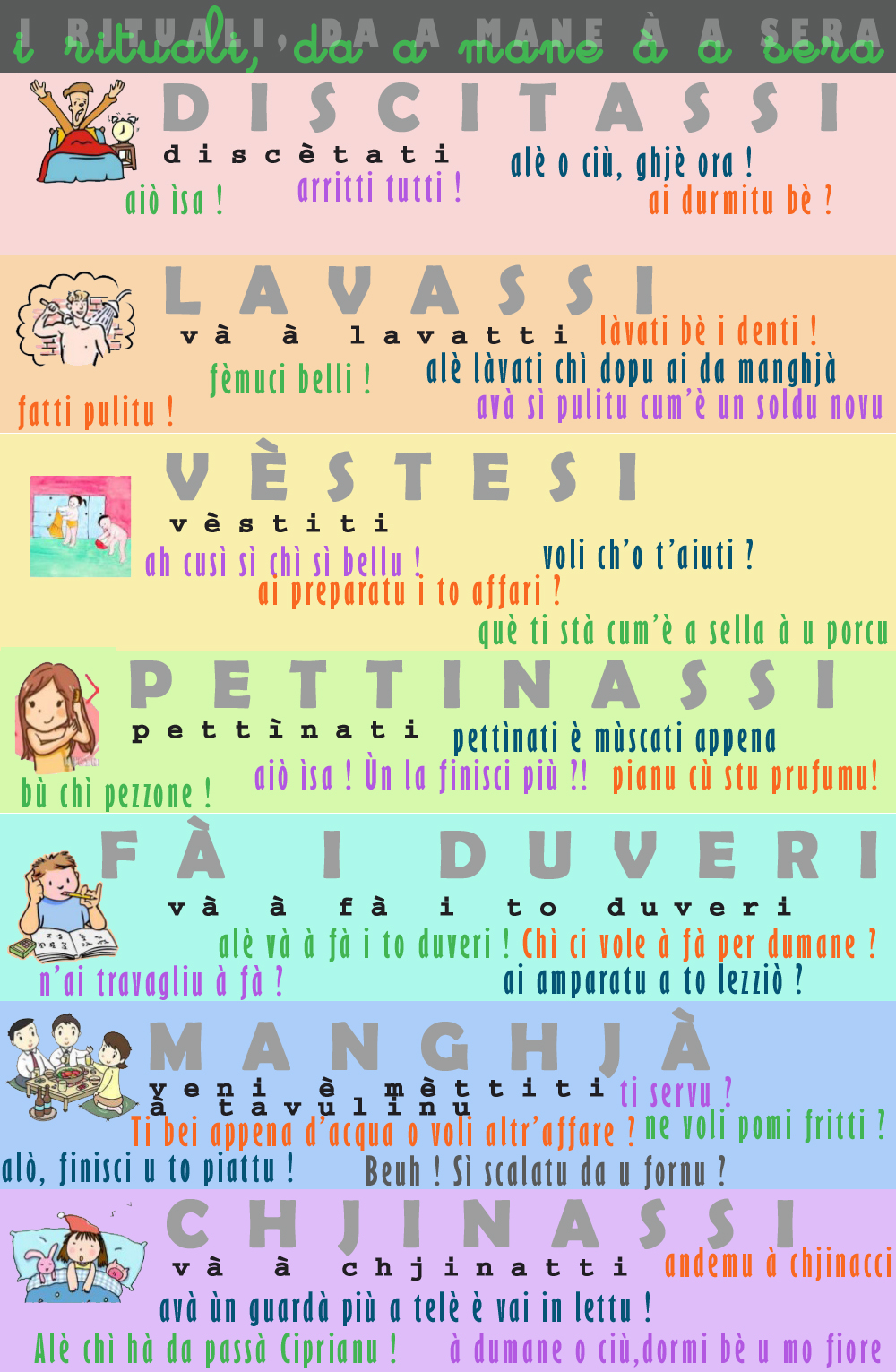 CAMBIARINE + PRUNUNZIA - ESSE È AVÈ - ARTICULI - SINGULARE È PLURALE - ANDÀ È STÀ - U PUSESSU - U PARAGONE