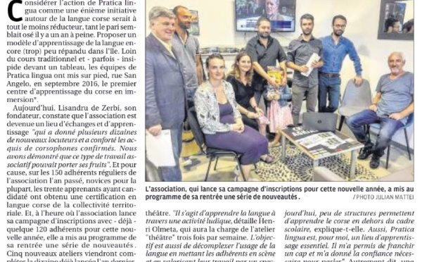 Rientrata 2017 - articulu di Julian Mattei in Corse-Matin