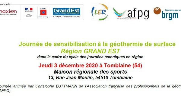 De l'AFPG : Journée de sensibilisation à la géothermie de surface Région GRAND EST - 06/07/2020