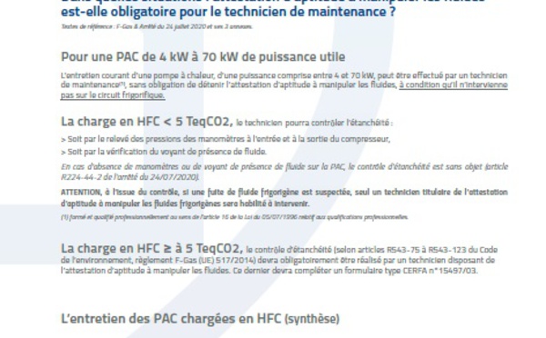 Note de synthèse : l'entretien des PAC chargées en HFC - 31/03/2023