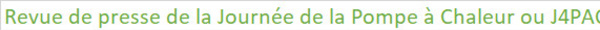 Revue de presse de la Journée de la Pompe à Chaleur ou J4PAC : merci à ThermPresse PAC : horizon prometteur, mais encore bien des efforts pour y parvenir Afin de positionner - tout particulièrement...