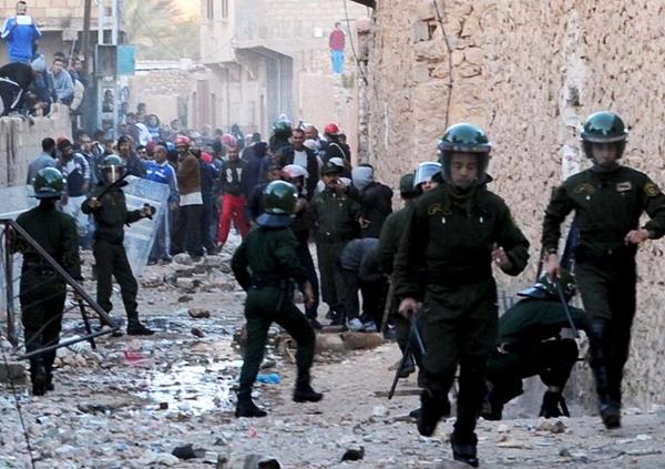 Ici la police algérienne aux côtéx des jeunes chaâmbas lors de l'un des innombrables raids que subissent les mozabites depuis maintenant 2 ans (PH/DR)