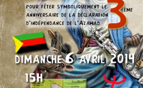 AZAWAD/ Rassemblement de solidarité et de soutien avec les Touaregs et l'Azawad ce dimanche 6 Avril à Paris - 05/04/2014