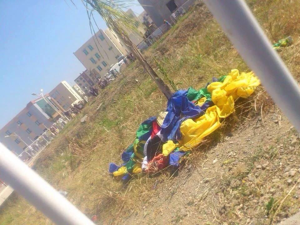 Drapeaux amazighs confisqués par la police algérienne aux supporteurs de la JSK, ce matin à l'entrée du stade de Blida