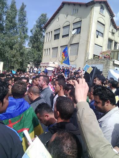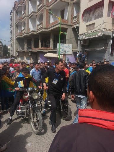 La police algérienne avait également cherché en vain la plaque destinée à l’inauguration de la place Slimane Azem. Le MAK a eu ce coup de génie de procéder à la pose de la plaque en ce 20 avril 2015. Les milliers de manifestants kabyles sont actuellement sur la place Slimane AZEM.
