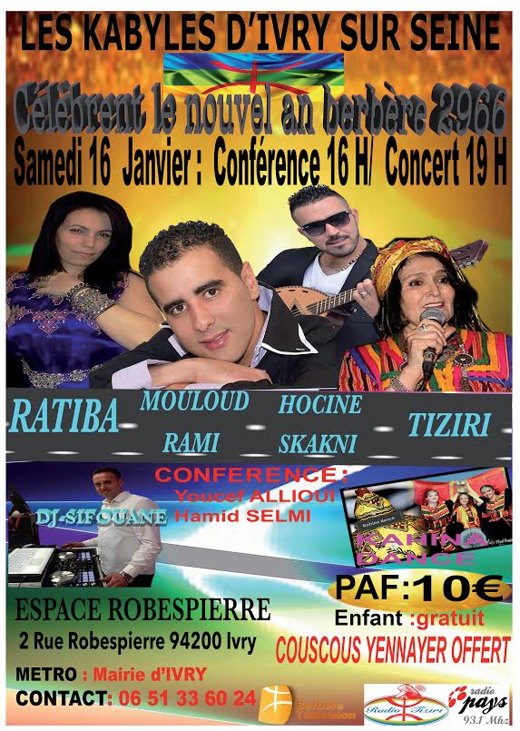 19h 00 : GRAND CONCERT KABYLE AVEC :Mouloud RAMI, Ratiba, SKAKNI Hocine, Tiziri, Et d'autres surprises