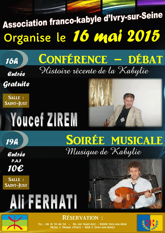 L’Association Franco-Kabyle d’Ivry organise une journée culturelle, avec au programme :