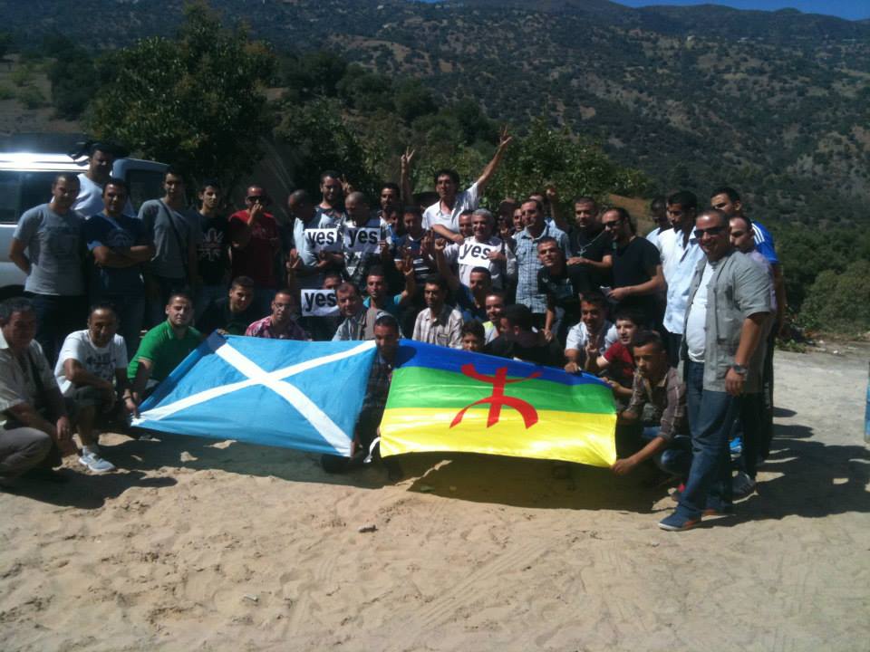 De son coté, le Mouvement pour l'autodétermination de la Kabylie (MAK), a apporté à sa manière son soutien à l'indépendance de l'Ecosse en se prêtant au jeu instauré par les partisans du OUI en posant devant le drapeau écossais, aux cotés du drapeau amazigh, comme pour signifier que la Kabylie et les autres peuples amazighs seront les prochains sur la liste des Nations sans états qui souhaitent recouvrer leur souveraineté.