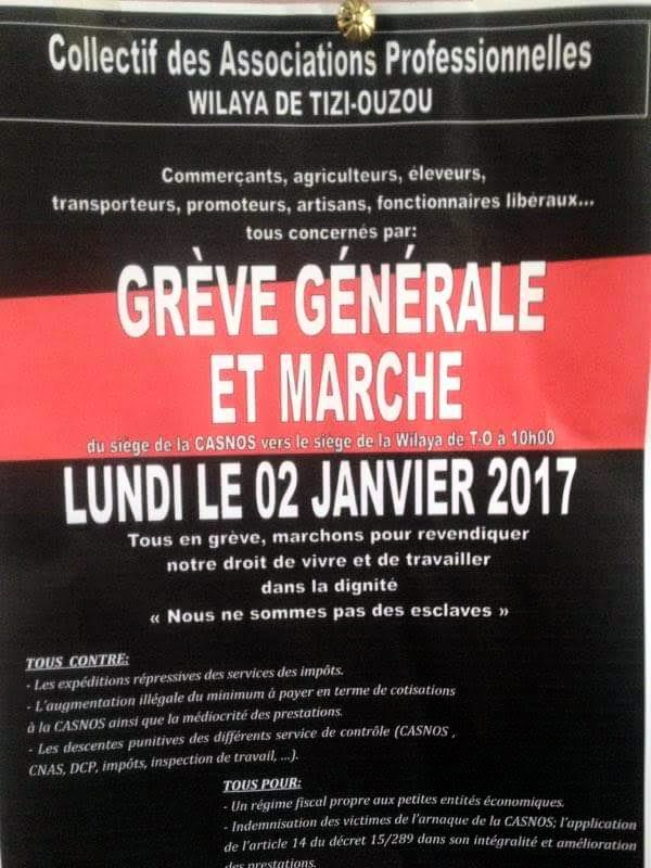 Il est à noter que la Kabylie n'arrête pas de réagir suite à la nouvelle Loi de Finance Algérienne de 2017, qui pénalise cette dernière, étant donné qu'elle est la cible privilégiée de l'administration fiscale colonialen, des grèves sont organisées un peu partout en Kabyle, contrairement aux autres départements Algériens qui abdiquent.