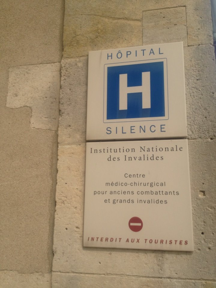 Voir en pièce-jointe la photo de la plaque d'entrée de l’hôpital militaire des invalides, précisant que cet établissement est une institution nationale abritant le centre médico-chirurgical pour anciens combattants et grands invalides...interdites aux touristes.
