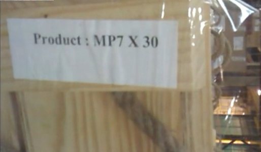 13 colis de 30 cartons de 10,2 kg de grenades MP7, soit un total de près de 4 tonnes (3978 kg) — (photo Rue89.com)