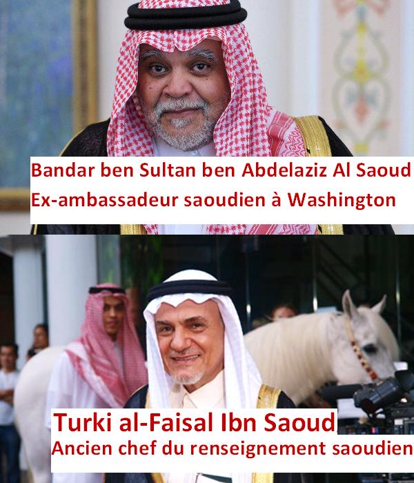 Zacarias Moussaoui qui était membre d’Al-Qaïda a indiqué que l’ex-numéro 1 d’Al-Qaïda, Oussama Ben Laben, lui-même saoudien, lui avait demandé de dresser une base de données de tous les donateurs : «Cheikh Oussama voulait garder une trace de qui donnait de l’argent... de qui on devait écouter ou de qui avait contribué au jihad», a indiqué Zacarias Moussaoui. C’est ainsi qu’il cite nommément le prince Turki al-Faisal, ancien chef du renseignement saoudien ou encore le prince Bandar ben Sultan, l’ex-ambassadeur à Washington.