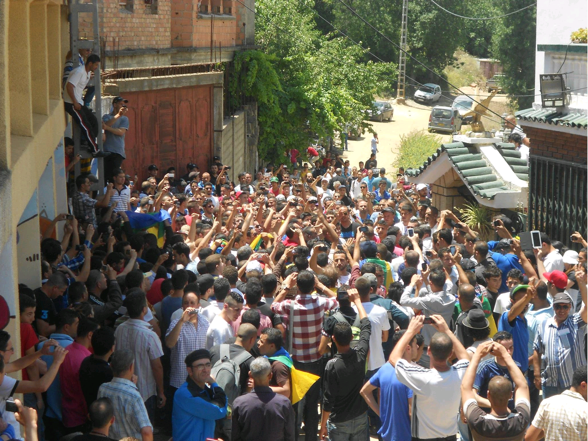 Une foule importante de jeunes kabyles outrés de voir le Bachagha Ould Ali Lhadi souiller la demeure du rebelle (PH/DR)