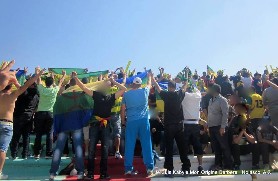BLIDA (SIWEL) — Avec la JSK, même quand elle perd un banal match de football, elle gagne sur le plan politique comme viennent de le prouver encore une fois ses dignes supporters puisqu'il convient de distinguer nettement les "gestionnaires mafieux du club" et les supporters de la JSK qui sont d'authentiques kabyles. Ci-après deux vidéos, l'une faite par un des supporters de la JSK à partir des tribunes où l'on entend dans une immense ferveur les slogans phares de la kabylie et l'autre faite par la télévision algérienne montrant les supporters du Mouloudia d'Alger scandant l'hymne algérien pendant que les supporters de la JSK tournaient le dos à l'hymne et scandaient "Pouvoir assassin" et "Ulac smah ulac! la JSK, à travers ses supporters, a démontré qu'elle restera à jamais le phare qui illumine et symbolise la Kabylie et son peuple en route vers sa liberté.A lire aussi :