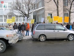 Rassemblement des militants du Rassemblement pour la culture et la démocratie (RCD) à côté du consulat d'Algérie à Montréal le 05/02/2011 à 11 h. Photos MAKS/SIWEL