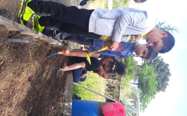 Di veranu, i zitelli di u CE2 anu principiatu à fà l’ortu. A prima tappa ghjera d’appruntà a terra cacciandu l’erba cattiva è vangala. Ghjera a parte à più difficiule ! Dopu  anu suminatu...