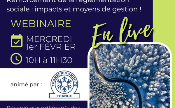 Retrouvez le replay du webinaire de LA CHAINE LOGISTIQUE DU FROID et TRANSFRIGOROUTE FRANCE à destination des adhérents pratiquant le transport transfrontalier et/ou cabotage, afin de les informer...