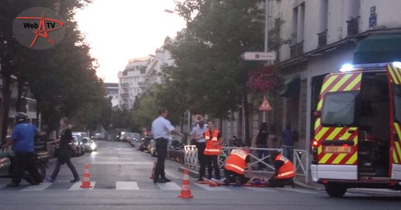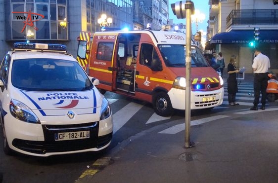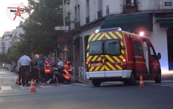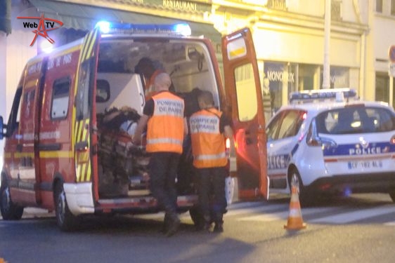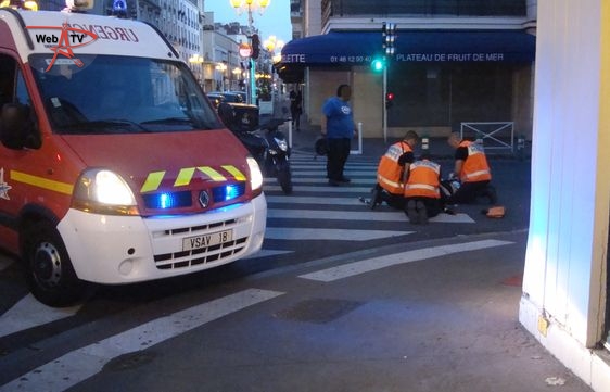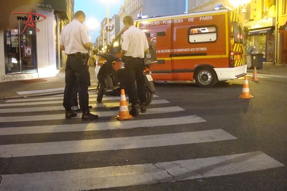 Les Sapeurs-Pompiers de Paris arrivent. Un responsable du restaurant Sushi Shop également. Le conducteur du deux-roues est placé dans une civière et transféré aux urgences.