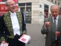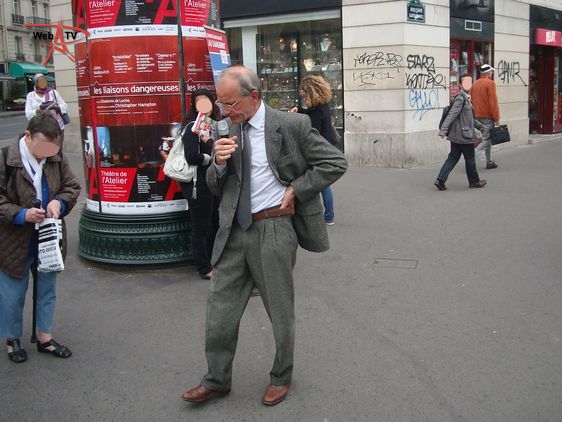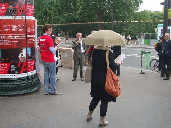 Qu'il vente ou qu'il pleuve, en faisant abstraction du temps et des passants qui passent sans l'écouter, puis qui s'arrêtent et petit à petit restent pour l'écouter, poser des questions et discuter, Axel Kahn s'est mis à la disposition de tous.