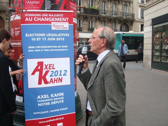 Rencontre avec un candidat aux élections législatives dans la 2e circonscription de Paris, qui regroupe la totalité du 5e arrondissement et 3 quartiers administratifs sur 4 dans le 6e et le 7e arrondissement : Axel Kahn, soutenu par le Parti Socialiste.