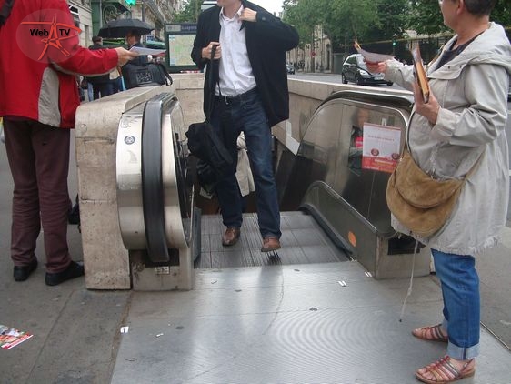 Une mécontente : la militante du Front de Gauche qui tracte au même endroit en haut de l'escalator.