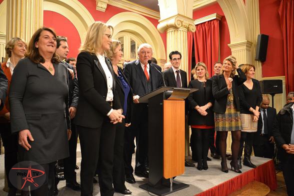 Médaille d'or aux élections municipales à Paris, Claude Goasguen a été réélu au premier tour avec 63 % des votes exprimés dans le 16e arrondissement. Lors des voeux aux habitants organisés dans la salle des fêtes de la mairie d'arrondissement le jeudi 15 janvier 2015 à partir de 18h30, le député-maire est revenu sur la politique parisienne avec une touche d'actualité nationale et internationale. Quatre ambassadeurs représentaient leur pays : Israël, l'Egypte, le Liban et la Biélorussie.