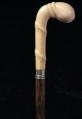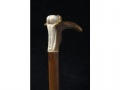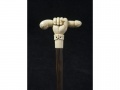 Lot 98 : Une canne à pommeau en ivoire sculpté représentant une main tenant un phallus. Fût en bois de palmier ; férule en fer et longueur de 85 cm. Estimation est de 1 800 à 2 000 € (c) Millon et associés.