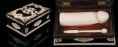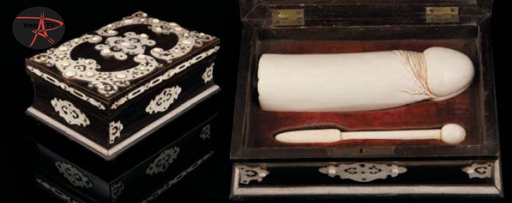 Le lot 147 est un objet d’art étrange venu de Chine et ancien. Il peut se ranger dans une vitrine ou dans un tiroir de meuble de chevet. C’est un rare petit godemichet en ivoire patiné se terminant par une boule, une prise sphérique, cerclée d’argent. D’une longueur de 12,5 cm, il a été créé au XIXème siècle et devrait s’arracher autour de 1 700 à 2 300 euros.
