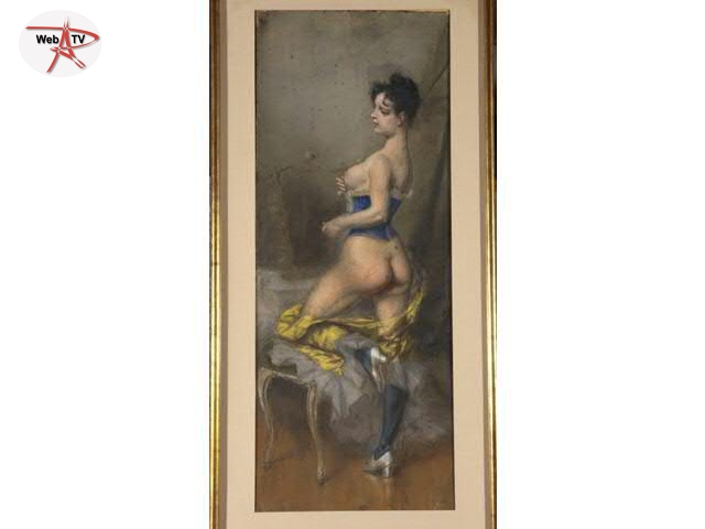 Lot 67 de Ladislas Bakalowicz (1833-1903) "Prostituées parisiennes". Estimation pour la paire de pastels : 5 500 à 5 700 € (c) Millon et associés.