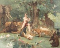 • Le lot 24 de Gustave Surand (1860-1937), « Orphée charmant les animaux » est un tableau signé et daté peint de 1904. Malheureusement, cette huile sur toile de 66 x 81 cm a été accidentée. Peintre orientaliste spécialisé dans les scènes avec des animaux sauvages et inspiré par l’antiquité, son tableau est estimé malgré la restauration qui s’impose de 2.000 € à 3.000 €.